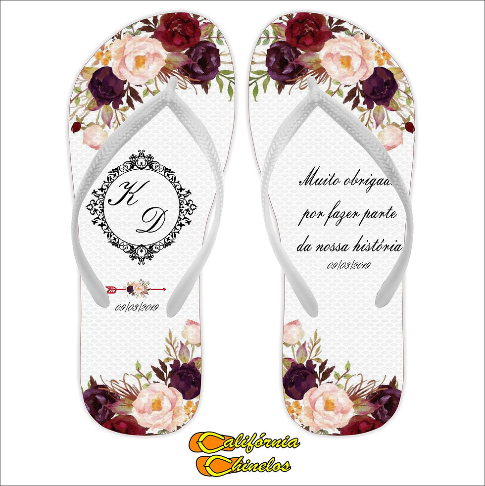 Chinelo Personalizado para Casamento Florido Marsala